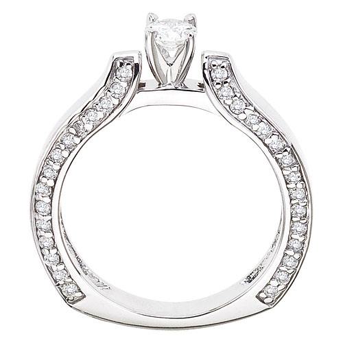 This 14 karat white gold cathedral diamond Qpid Bridal set features 1.2 carat total weight of H-I color / SI clarity grade diamonds with a round center stone.